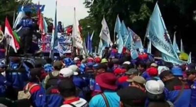 Aksi Unjuk Rasa Ribuan Buruh di Sidoarjo