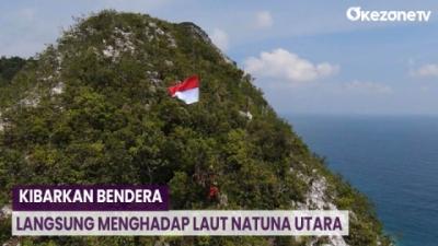 Basarnas Natuna Kibarkan Bendera Merah Putih Raksasa di Tebing Setinggi 200 Meter