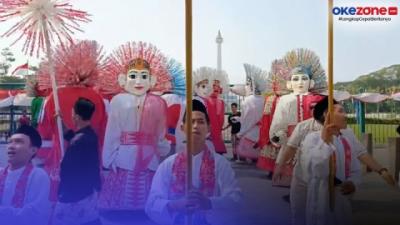 Prosesi Kirab Pengembalian Bendera di Jakarta, Atraksi Belasan Ondel-ondel Hibur Warga di Monas