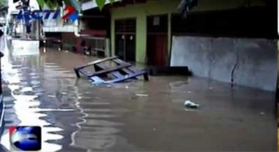 Warga Kampung Pulo Lebaran di Tengah Banjir