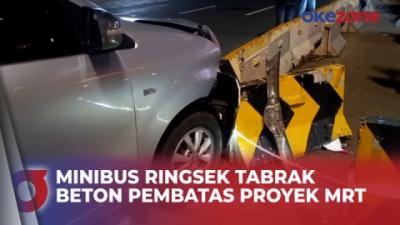 Minibus Ringsek Usai Tabrak Beton Pembatas Proyek MRT di Kawasan Thamrin