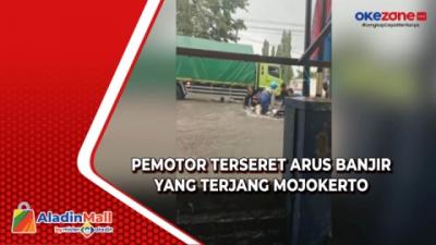Detik-Detik Pemotor Terseret Arus Banjir yang Terjang Mojokerto