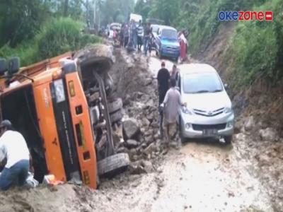 Detik-Detik Mobil Terbalik di Jalur Lintas Sumatera yang Rusak Parah