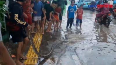 Warga Temukan Ular Piton di Lokasi Banjir Jatinegara, Jakarta Timur
