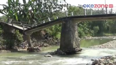 Pembatas Jembatan Penghubung 2 Desa Ambrol Dihantam Banjir