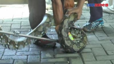 Penangkapan Ular Piton Sepanjang 4 Meter di Gudang Mebel