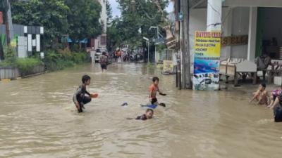Banjir Merendam Villa Nusa Indah Bogor, Anak-anak Sibuk Berenang