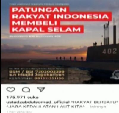 Ustaz Abdul Somad Posting Galang Dana Beli Kapal Selam Baru