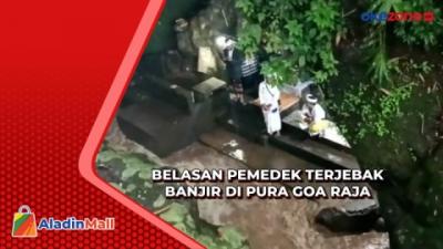 Lokasi di Dasar Jurang, Belasan Pemedek Terjebak Banjir di Pura Goa Raja