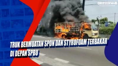 Truk Bermuatan Spon dan Styrofoam Terbakar di Depan SPBU