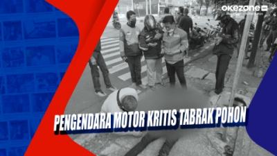 Pengendara Motor Kritis Tabrak Pohon di Jalan Raya Panjang Kebon Jeruk Jakbar