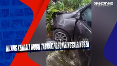 Hilang Kendali, Mobil Tabrak Pohon hingga Ringsek