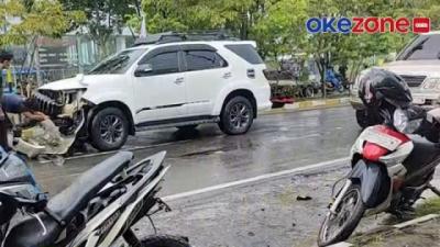 Rem Tiba-Tiba Tak Berfungsi, Fortuner Tabrak Motor dan Pembatas Jalan