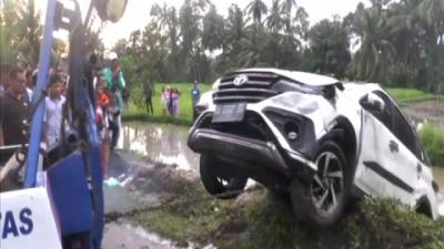 Minibus Tabrak Sedan, Kedua Mobil Masuk ke Sawah