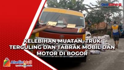 Kelebihan Muatan, Truk Terguling dan Tabrak Mobil dan Motor di Bogor