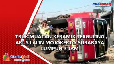 Truk Muatan Keramik Terguling, Arus Lalin Mojokerto-Surabaya Lumpuh 3 Jam