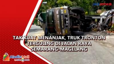 Tak Kuat Menanjak, Truk Tronton Terguling di Jalan Raya Semarang-Magelang