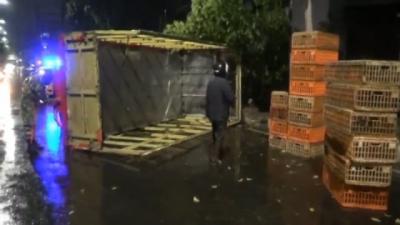 Truk Pengangkut Ayam Terguling di Jalan Samanhudi Sawah Besar