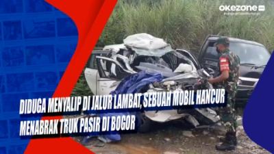 Diduga Menyalip di Jalur Lambat, Sebuah Mobil Hancur Menabrak Truk Pasir di Bogor