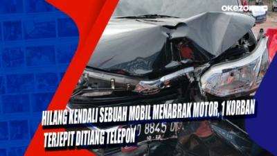 Hilang Kendali Sebuah Mobil Menabrak Motor, 1 Korban Terjepit Ditiang Telepon