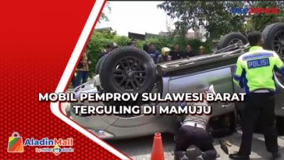 Mobil Pemprov Sulawesi Barat Terguling di Mamuju