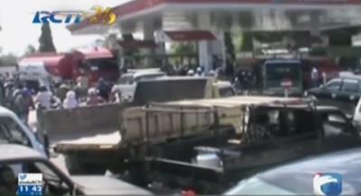 Kelangkaan BBM, Ratusan Kendaraan Antre di SPBU
