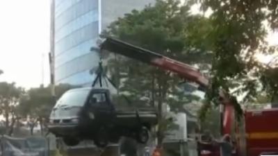 Sopir Belajar Mengemudi, Mobil Tercebur ke Sungai di Kemayoran