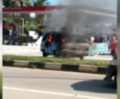 Mobil Angkutan Kota Terbakar di SPBU Kendari