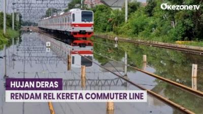 Hujan Deras Rendam Rel Kereta Commuter Line Jurusan Tanjung Priok-Jakarta Kota