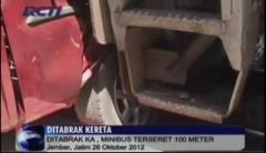 Ditabrak KA, Minibus Terseret 100 Meter