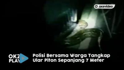 Ular Piton Sepanjang 7 Meter Ditangkap Polisi Bersama Warga di Bekasi