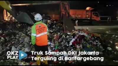 Truk Sampah DKI Jakarta Terguling di KM 11 Bantargebang, Bekasi