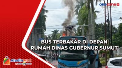 Korsleting Listrik, Bus Pariwisata Terbakar di Depan Rumah Dinas Gubernur Sumut