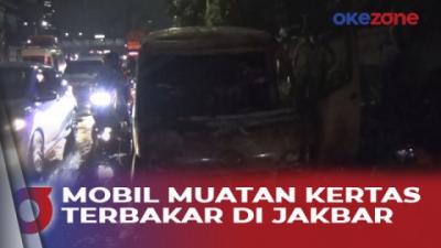 Diduga Korsleting Listrik, Mobil Muatan Kertas Hangus Terbakar di Jakbar