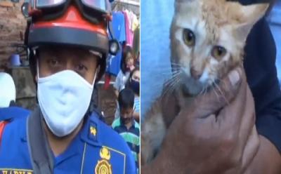 Heroik, Petugas Damkar Selamatkan Kucing Tercebur Sumur 20 Meter