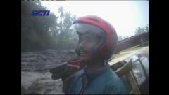Pengendara Motor Nyaris Terbawa Arus Banjir Lahar