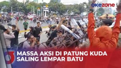 Massa Aksi di Patung Kuda Saling Lempar Batu dan Botol, Ini Pemicunya