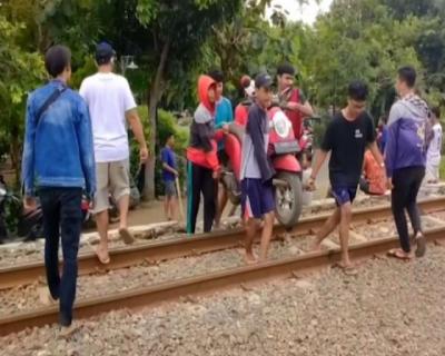 Hindari Penyekatan, Warga Nekat Menggotong Motornya Lintasi Jalur Kereta Api