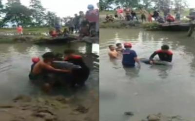 Lumba-Lumba Berukuran Dua Meter Terdampar di Sawah