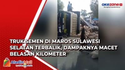 Truk Semen di Maros Sulawesi Selatan Terbalik, Dampaknya Macet Belasan Kilometer