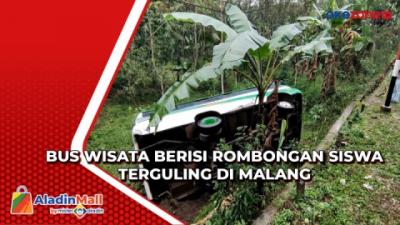 Bus Wisata Berisi Rombongan Siswa Terguling di Malang