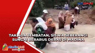 Tak Ada Jembatan, Siswa Seberangi Sungai Berarus Deras di Madina