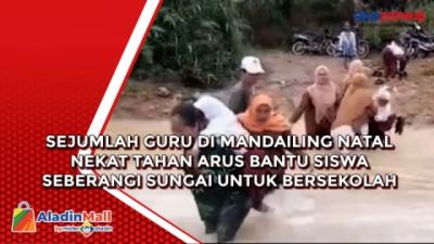Sejumlah Guru di Mandailing Natal Nekat Tahan Arus Bantu Siswa Seberangi Sungai Untuk Bersekolah