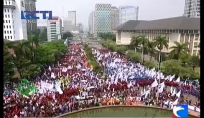 Buruh Masih Bertahan di Kawasan Patung Kuda