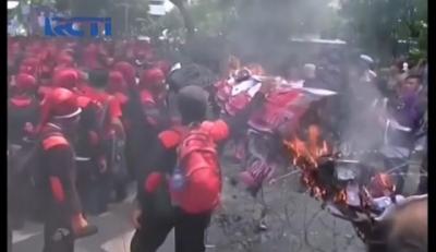Unjuk Rasa Buruh Diwarnai Aksi Bakar Keranda Mayat