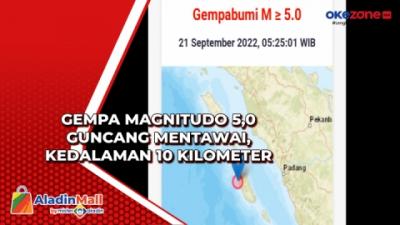Gempa Magnitudo 5,0 Guncang Mentawai, Kedalaman 10 Kilometer