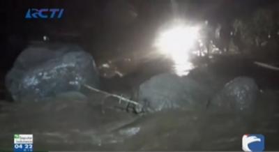 Lahar Gunung Sinabung Menutup Badan Jalan