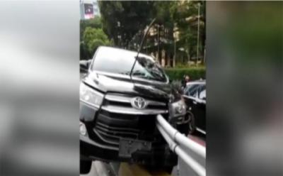 Minibus Tabrak Pembatas Jalan di Jalan Gatot Subroto, Jaksel