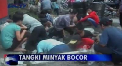 Warga Mengais Tumpahan Minyak Goreng