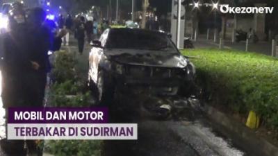 Terlibat Kecelakaan di Jalan Sudirman, Mobil dan Motor Terbakar